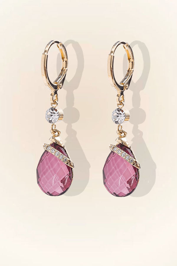 Elegant Crystal Teardrop Design - These exquisite 14K gold-plated earrings feature dazzling cubic zirconia and natural purple crystal gemstones in a graceful teardrop shape, perfect for adding sophistication to any formal or casual look.