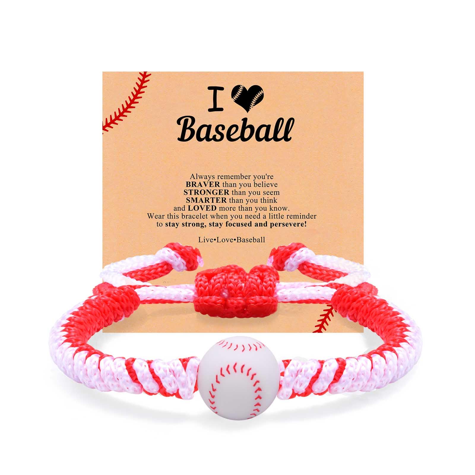 Pulsera deportiva de silicona trenzada: la pulsera de accesorios de béisbol está tejida con cuerda de nailon hecha a mano y cuentas de silicona seguras de grado alimenticio, ligera e impermeable, cómoda de llevar y adecuada para deportes y actividades al aire libre. Adecuado para niños a partir de 3 años.