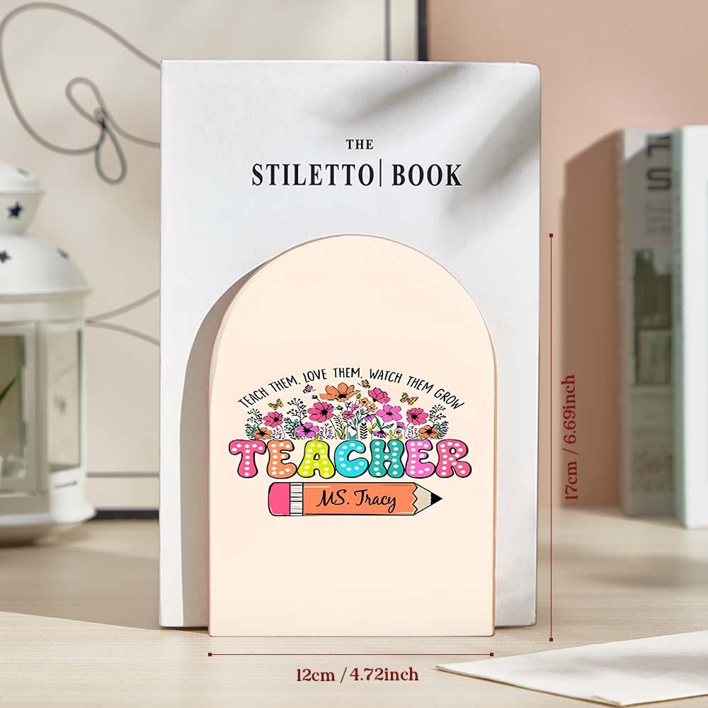 Personalized Wood Bookends with Name Pencil Floral Bookend Back to School Gift for Teacher