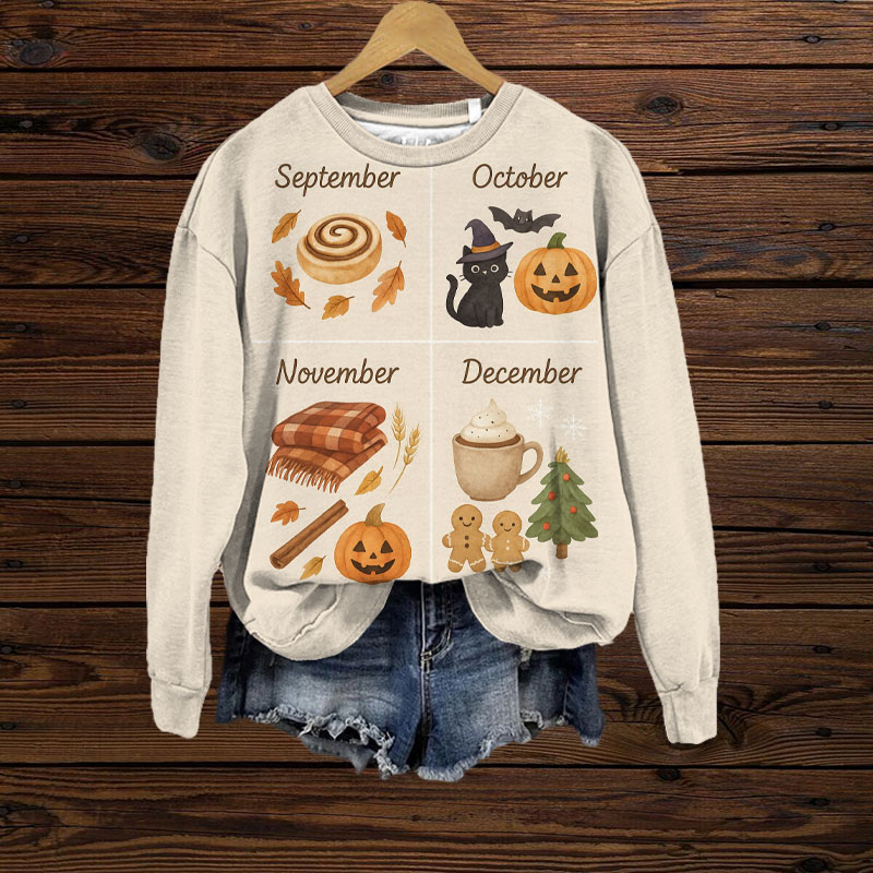 Retro Autumn Thanksgiving Halloween Print Sweatshirt