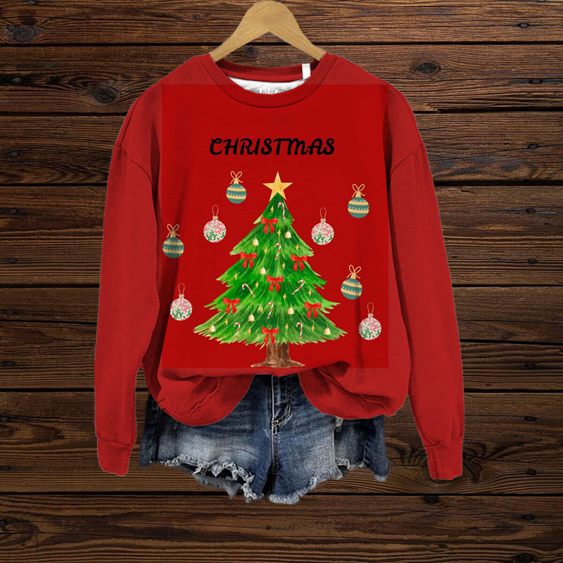 Retro Christmas Tree Print Sweatshirt