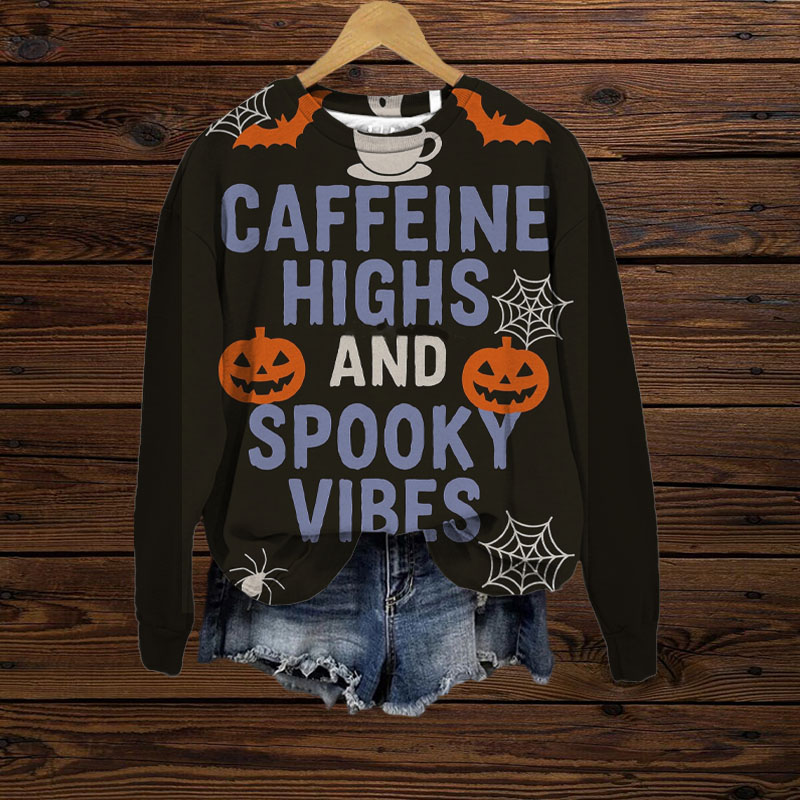 Vintage Halloween Pumpkin Ghost Print Sweatshirt