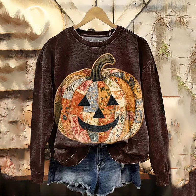 Vintage Halloween Pumpkin Western Symbol Print Sweatshirt