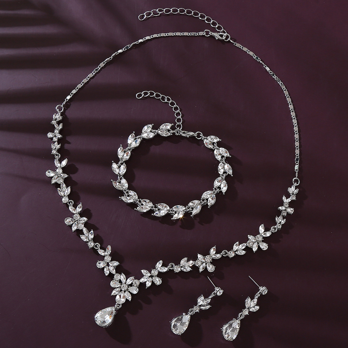 Vintage Luxury Crystal Bridal Wedding Necklace Earrings Set