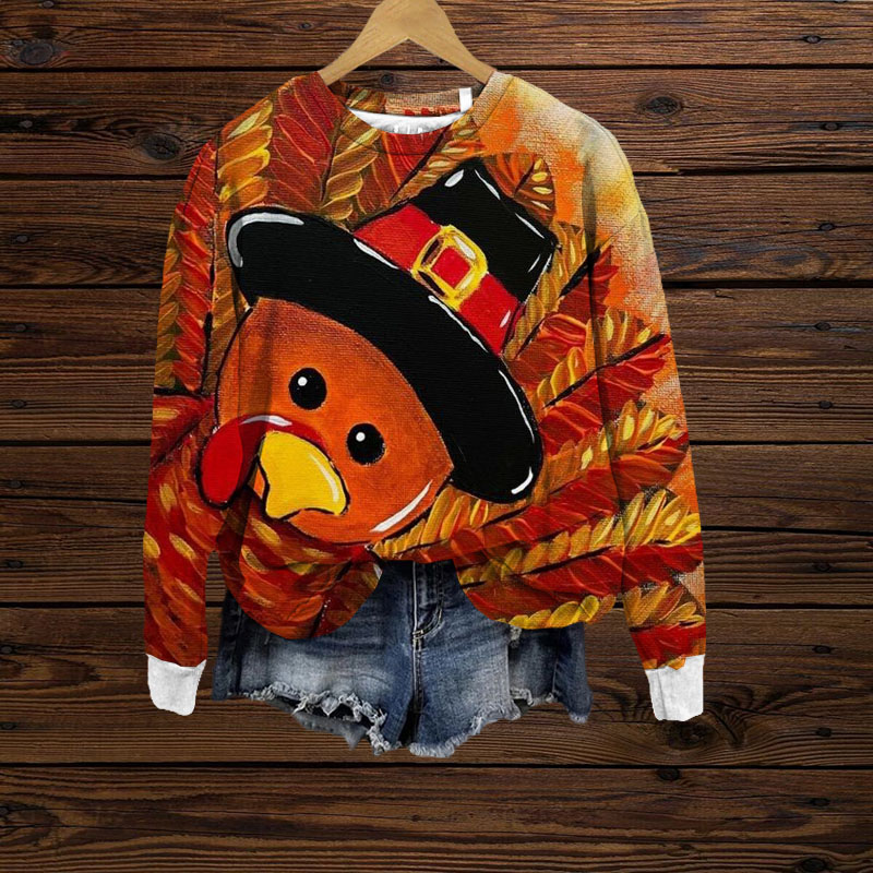 Vintage Thanksgiving Turkey Print Sweatshirt