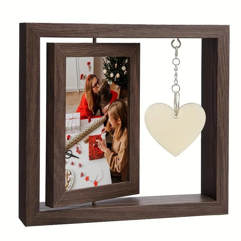 Wooden Rotating Heart Pendant Photo Frame Display Stand
